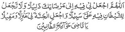 Translation: “O Allah, on this day, show me the way to win Your pleasure, do not let Shaytan have a means over me, make Paradise an abode and a resting place for me, O the One who fulfills the requests of the needy.”