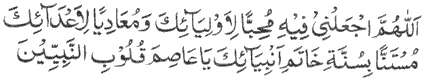 Translation: “O Allah, on this day, makes me among those who love Your friends, and hate Your enemies, following the way of Your last Prophet, O the Guardian of the hearts of the Prophets.”