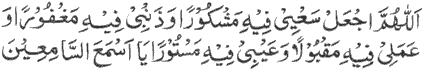 Translation: “O Allah, on this day, make my efforts worthy of appreciation, and my sins are forgiven, my deeds accepted, my flaws concealed, O the best of those who hear.”