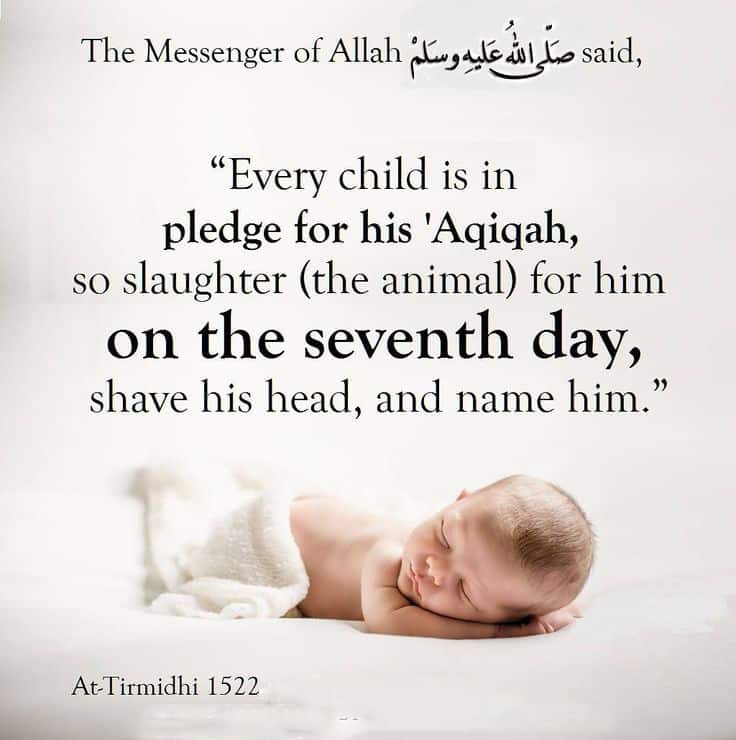 Aqeeqah: Aqeeqah is a form of Sadaqah which safeguards your child from all the Evil. It is done after the seventh day of the arrival of the new-born, as a form of welcome for it and to give thanks to the One who gave the blessings, it is prescribed to slaughter a sheep. The Messenger (SAW) said: "Every child is in pledge for its 'Aqeeqah which is sacrificed for it on its seventh day, and it is named on it, and its head is shaved" (Abu Dawood). If the new-born is a boy then two sheep are to be sacrificed, and if it is a girl then one sheep.