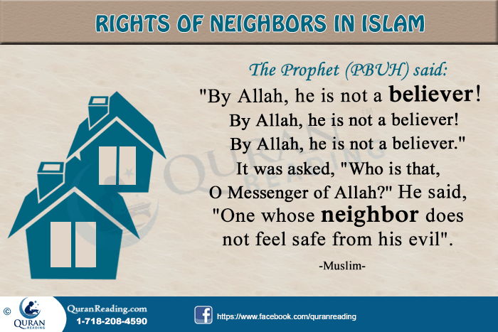 There are so many guidelines described in the Quran and religious scriptures that enhances the importance of good relationships with the neighbors. So briefly we can sum up the rights of the neighbors in the following lines, which also shows how much importance is being given in Islam to the topic such as this, as it is the basic part of a good and stable society.