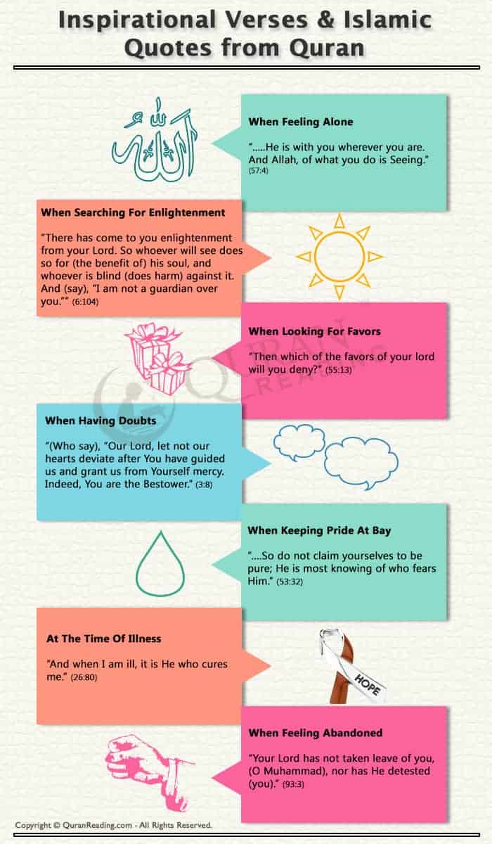Below mentioned are some inspirational or motivational verses from the Holy Quran for when we need it, and indeed we need it all the time in our lives.