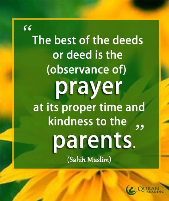 Our Beloved Prophet Muhammad (PBUH) reinforced the duty to be kind to parents. Once a companion of the Prophet Muhammad (SAW) asked Him which of the many good deeds a man can do is the most loved by Almighty Allah. Prophet Muhammad (SAW) answered him by saying, “To offer the prayer in its proper time”. The companion then asked, “And what is next?” to which Prophet Muhammad replied, “To be good and dutiful to your parents…” (Bukhari)