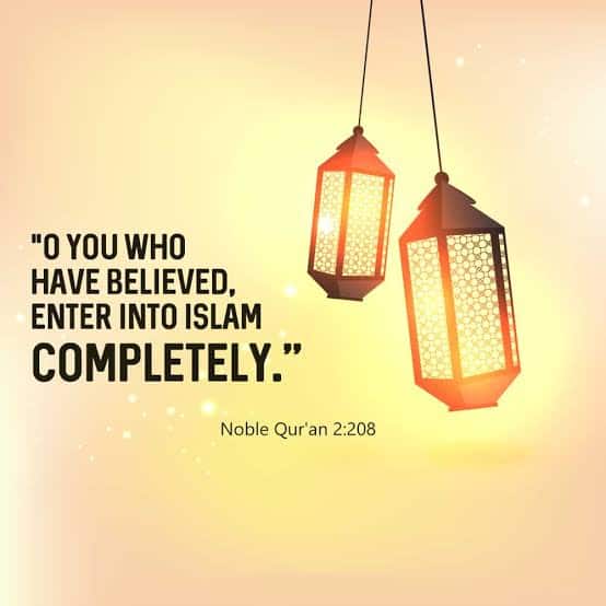 "O you who have believed, enter into Islam completely and perfectly and do not follow the footsteps of satan. Indeed he is to you a clear enemy." (Quran, 2:208)